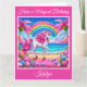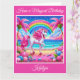 A beautiful design with an elegant magical unicorn standing on a colourful fantasy beach with a glittery rainbow. Perfect for a girl's birthday card. Add your own personalized text.