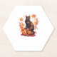 Magical Black Cat in Autumn Forest � Celestial Fal Paper Coaster