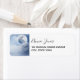 Address labels with a magical fantasy sky with fluffy blue clouds and a big beautiful moon. 2 white swans flying off together.