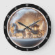 This clock does not light up. The illumination effect is simulated by the artwork.