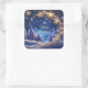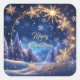 Magical Christmas time - golden snowflakes on blue Square Sticker