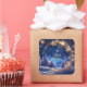 The Christmas season - a time full of wonder, joy, hope, expectations and surprises. This sticker features an golden snowflakes swirl in the blue night sky above the winter forest. Beautiful decor for your your Christmas gifts and Christmas greetings! Custom text.