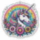 Colourful rainbow unicorn and flowers with a rainbow background stickers.
