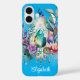 This magical dreamcatcher iPhone case features a large tear-shaped crystal with delicate flowers, foliage and hanging gems on an aqua blue background. Personalized with your name. Background colour or font can be changed by using the edit button. Makes a great gift for birthdays, graduation or Christmas!
