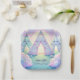 Enhance your child's starlit sleepover with these enchanting plates. Each one is adorned with a serene twilight backdrop in pastel shades of pink, purple, and blue, reminiscent of a mystical sky. Central to their design are two adorable teepees lit by fairy lights, perfect for a night of storytelling and secrets. These plates are sure to add a magical touch to any sleepover or birthday celebration.
