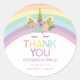 This is a unicorn and rainbow themed birthday party Favour Sticker