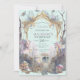An enchanted fairy pixie 5th blue birthday party invitation. This beautiful painted invitations feature fairy pixie, unicorn, mushrooms, a carriage, butterflies and a portal to the fairy land. You may personalize this for any age.