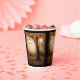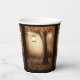Paper cups with a whimsical enchanting illustration in rich brown and yellow colours. A magical mystical forest with a large tree holding an old fashioned lantern. Fairy lights dancing all around. An enchanting wonderful design.