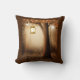 Pillow with a whimsical enchanting illustration in rich brown and yellow colours. A magical mystical forest with a large tree holding an old fashioned lantern. Fairy lights dancing all around. An enchanting wonderful design.