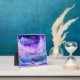 Stunning AI generated digital art tabletop plaque features a beautiful fantasy scene of abstract frozen waves and cliffs of ice in a watercolor style composition