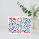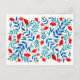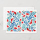 Magical garden - red and turquoise. Watercolor botanical illustration postcard