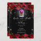 Magical Glow Red Rose Silver Black Wedding Invitation