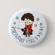 Celebrate your little wizard's big day with this charming "Birthday Girl's Mom" button! This adorable pin features a cute, chibi-style illustration of Harry Potter, complete with his iconic glasses, scar, and a red and gold Gryffindor scarf. Perched sweetly on his arm is his loyal snowy owl, Hedwig. The text "BIRTHDAY GIRL'S MOM" is written in a whimsical font around the image. Set against a soft blue background with colourful pastel stars, this button is the perfect accessory for a mom to wear at her son's magical, Harry Potter-themed birthday party.