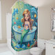 Transform your bathroom into an enchanting underwater world with this whimsical shower curtain featuring a cute mermaid enjoying a bubbly bath surrounded by playful dolphins, colourful fish, and vibrant ocean coral. With its vivid colours and charming cartoon-style artwork, this design is perfect for children’s bathrooms or anyone who loves ocean-themed decor. Printed with high-quality detail on durable, water-resistant fabric, it's both functional and delightful—a perfect way to bring magic to your everyday routine! Perfect for kids, beach house, summer,kids bathroom decor, ocean theam lovers , mermaid theme decor and under the sea birthday gifts.