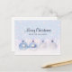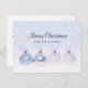 Holiday postcard with a magical Christmas design. Christmas tree decorations sitting together on some white snow. The background has a white bokeh (blurred lights) pattern with falling snowflakes. Perfectly captures the wonder and magic of Christmas.