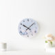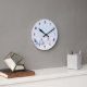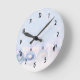 A clock with a magical Christmas design. Christmas tree decorations sitting together on some white snow. The background has a white bokeh (blurred lights) pattern with falling snowflakes. Perfectly captures the wonder and magic of Christmas.
