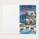 This whimsical Christmas card features a charming winter landscape filled with playful snowflakes dancing in the air. A cozy, brightly decorated cottage, with twinkling lights and a snow-dusted roof, stands at the centre. Surrounding the cottage are cheerful woodland family of friendly deer. The sky is a rich twilight blue, dotted with stars and a full moon casting a magical glow. Festive ornaments and candy canes frame the edges, adding a touch of holiday cheer. Inside, a heartfelt message reads, “Wishing you a Merry Christmas filled with joy, laughter, and magical moments!”