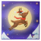 This Magical Moonlit Reindeer Decorative Ceramic Tile features a charming reindeer soaring across a glowing golden moon, wrapped in a festive red scarf and hat. Set against a deep violet night sky with twinkling stars and snowy treetops, the design radiates warmth, magic, and holiday spirit.