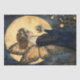 Magical Night Fairy with Flowers Under Golden Moon Tissue Paper