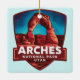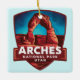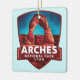 The "Magical Night in Arches National Park" ceramic ornament features a beautifully detailed depiction of the park’s arches illuminated by a starry night sky. It’s a charming keepsake that captures the enchanting beauty of the park.