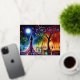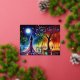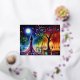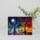 Magical night sky with glowing orbs lanterns art foil holiday postcard