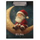 This customizable cute clipboard features a cute Santa Claus illustration sitting under night sky with crescent moon and bright stars. You can customize the default text. This is a great back-to-school gift.