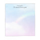 A notepad with a soft and lovely background image. Pastel blues and pink clouds with a magical rainbow.