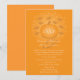 Gorgeous Halloween pumpkin invitation with an illuminated pumpkin and bats flying around it. And space for a monogram.