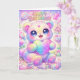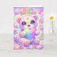 Send a world of wonder with this enchanting children's birthday card featuring an adorable rainbow puppy. This fluffy golden pup wears a shimmering moon and star crown while holding a magical swirl lollipop. Surrounded by a dreamscape of pastel clouds, floating hearts, and vibrant rainbows, this celestial scene is filled with starlight and joy. This vertical design is the perfect way to share magical birthday wishes with any child who loves puppies and fairytale adventures.