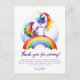 Add a sprinkle of enchantment to your gratitude with our 'Magical Unicorn Birthday Thank You Cards'. Ideal for ending your little girl’s rainbow unicorn party on a high note, these cards are a vibrant expression of thanks that capture the whimsical essence of a truly magical day. Each card is a kaleidoscope of joy, featuring a prancing unicorn atop a brilliant rainbow, ready to whisk your heartfelt thanks to each cherished guest.