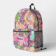 This pretty unicorn backpack features a pattern of very romantic, dreamy unicorns with lush manes and golden horns. They also have gorgeous rose bouquets in their manes. There is a lovely purple/pinkish fantasy canvas beneath the flowers and unicorns, and all around these magical creatures are roses of pink, purple and apricot adding a touch of a truly, enchanted realm. This backpack would be perfect for any unicorn-loving little girl, and even better - she can personalize it with her own name. This charming unicorn-patterned rucksack would be great for school, picnics, outings with friends and family or for just keeping her books or other prized treasures in. No doubt she'll be the envy of all her other unicorn loving friends when they see this special, unique and enchanting backpack!