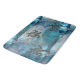 On this dreamy blue bath mat are paint strokes shades of blue with shimmery and glittery overlays creating whimsical magical modern art along with a black tribal swirl sea turtle with gold glittery drops on the top and bottom for added whimzy.