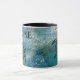 On this dreamy mug are paint strokes shades of blue with shimmery and glittery overlays creating whimsical magical modern art along with a black tribal swirl sea turtle with gold glittery drops for added whimzy. Can be personalized