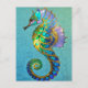 Gorgeous jewel tones: turquoise, aqua, green, lavender gold, gilded seahorse. Digitally hand drawn art. What a fun, frameable greeting card for ocean lovers and those fond of mysterious sea critters, sea creatures