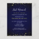 simple easy to read design, yellow bokeh lights on blue gradient background | wedding reception invitation postcard for elopement, no formal wedding ceremony