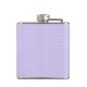 A flask which says: Magical Stuff. Designed with an illustration of a cute and kawaii unicorn sleeping peacefully with a fancy curly mane and tail. A colourful rainbow trailing behind a shooting star . Background is a white and purple polka dot pattern. Adorable fantasy design.
