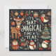 A vibrant and festive Christmas design filled with colourful retro foxes and robins and deer. Scandinavian-inspired holiday elements. The cheerful "It's that Magical time of the year " message is surrounded by hand-drawn ornaments, candy canes, stars, snowflakes, and decorative foliage, creating a joyful and cozy seasonal atmosphere. This illustration blends a rustic, artistic feel with a modern holiday aesthetic, perfect for cards, decorations, and gifts.