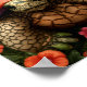 A charming digital artwork of a cute turtle nestled among vibrant mushrooms and colourful flowers, with bees and butterflies resting gently on its shell. This fantasy forest scene blends realism with whimsy, creating a magical atmosphere perfect for children’s rooms or nature lovers. Ideal for art prints, nursery decor, and whimsical spaces, this illustration captures the harmony between animals, insects, and nature in a peaceful setting.