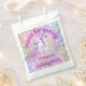 Magical unicorn birthday party favours favour bag for treats for a girl unicorn birthday party in pink and purple glitter rainbow party theme.
