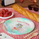 Make birthday parties extra special with this magical unicorn plate! Features a watercolor unicorn with rainbow hair, pretty flowers, and soft pastel skies. Personalized with your child’s name. Perfect for girls who love fantasy and sparkle!