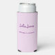 Personalize this purple unicorn seltzer can cooler with any name and "believes in unicorns".