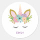 Magical Unicorn Personalized name glitter girly Classic Round Sticker