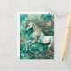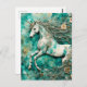 A magical white unicorn on a teal watecolor background with cream flowers fantasy AI generated art