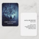 Business cards with an image of a magical mystical wolf standing in a forest with gentle snow falling around.
