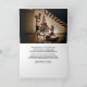 This card for Christmas and the holidays features beautiful artwork of a magical winter scene, with a cute mouse holding a little fruitcake in front of a country barn. Inside the card is a template for your photo, an editable text poem, a place for your name, and some blank space for your own handwritten note.