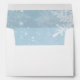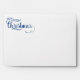 White snowflakes and sparkles on a sky blue background with calligraphy script "Merry Christmas" graphic and editable text fields.
