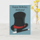 Send some magical greetings their way with this personalized card. It's perfect for birthdays or any occasion. This card has an illustration of a magician's hat in black and red and a magic wand in black and white set against a light blue background. The message on the front and the message on the inside of this card can be personalized with your own greeting.
