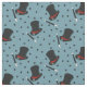 Create a magical gift with this patterned fabric. It has illustrations of classic magician's hats in black and red with magic wands in black and white with fun star accents in black all set against a light blue background.