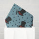 Add a magical touch to any gift with this patterned tissue paper. it has illustrations of classic magician's hats in black and red with magic wands in black and white with fun star accents in black all set against a light blue background.