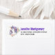 Étiquettes de adresse avec une illustration d'aquarelle élégante mettant en vedette une mère aquarelle et une licorne de bébé avec crinière violette et ancre. Des fleurs d'oranger délicates entourent la paire.